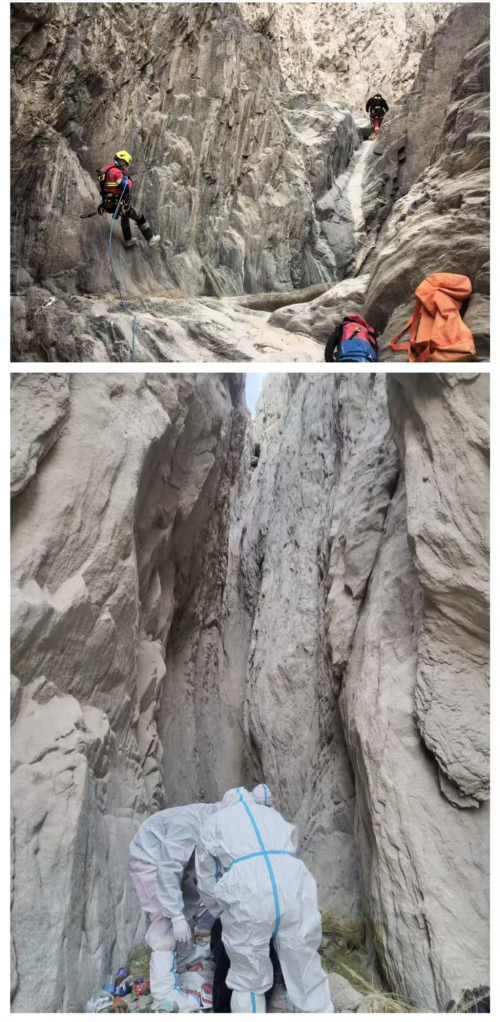 11月19日清晨7时,救援队员背负专业登山装备,向海拔3700米的坠崖区域发起攀登。在无人区恶劣环境中,队员们不仅要克服高原反应、低温失温等生理挑战,还要穿越涉水路段、规避坠落与坠石风险,累计完成高海拔山地徒步30公里。救援过程中,团队采用索降作业与接力搬运相结合的方式,在悬崖峭壁间稳步推进,最终成功找到遇难者遗体并安全转运。
